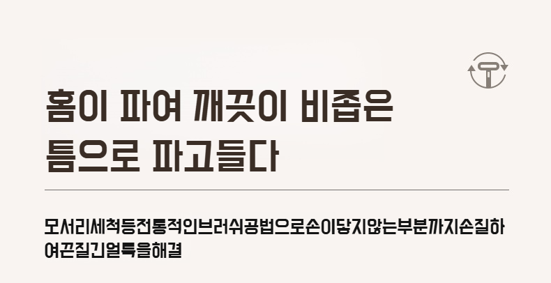 연모 브러쉬로 틈새 청소하는 장면